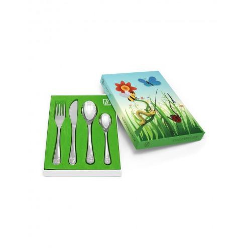 Kindercouvert natuurvriendjes 4 delig staal vork,mes en 2xlepel