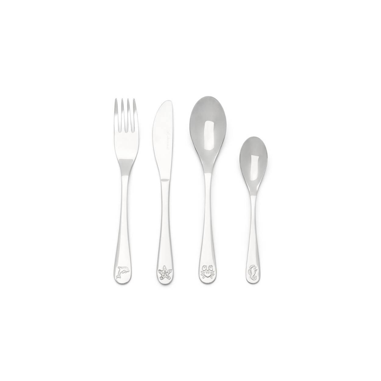 Maak kennis met de dieren die in de zee leven met dit leuke kinderbestek. Op de bestekdelen zien we een dolfijn, een zeepaardje een krab en een zeester. Het bestek is uitgevoerd in hoogwaardig 18/10 RVS dat vaatwasmachinebestendig is en wordt geleverd in een kleurrijke geschenkverpakking.