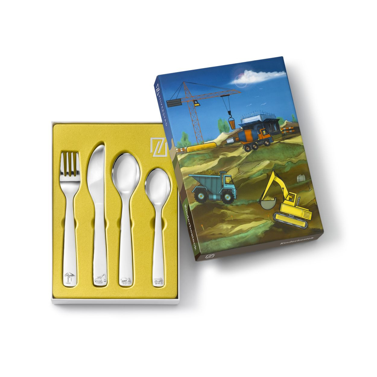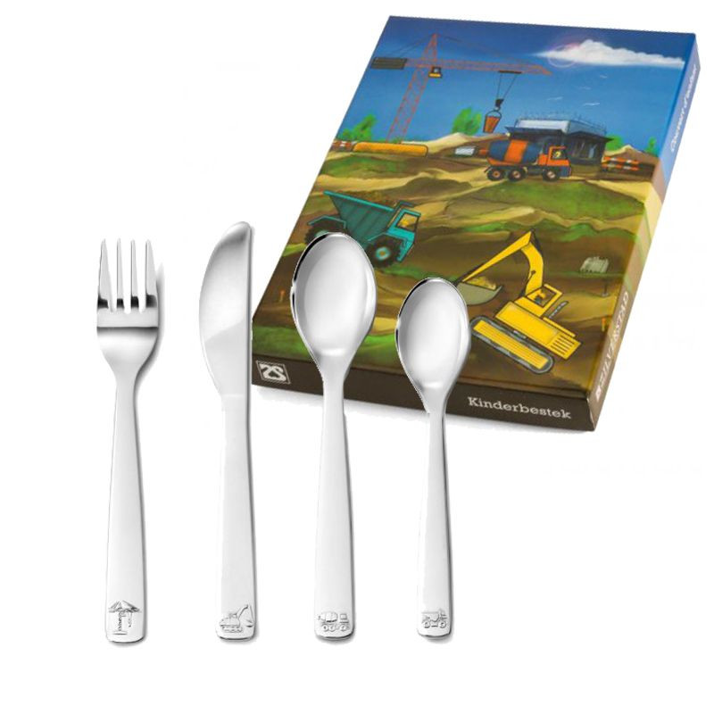 4-delig kindercouvert staal Bouwvoertuigen