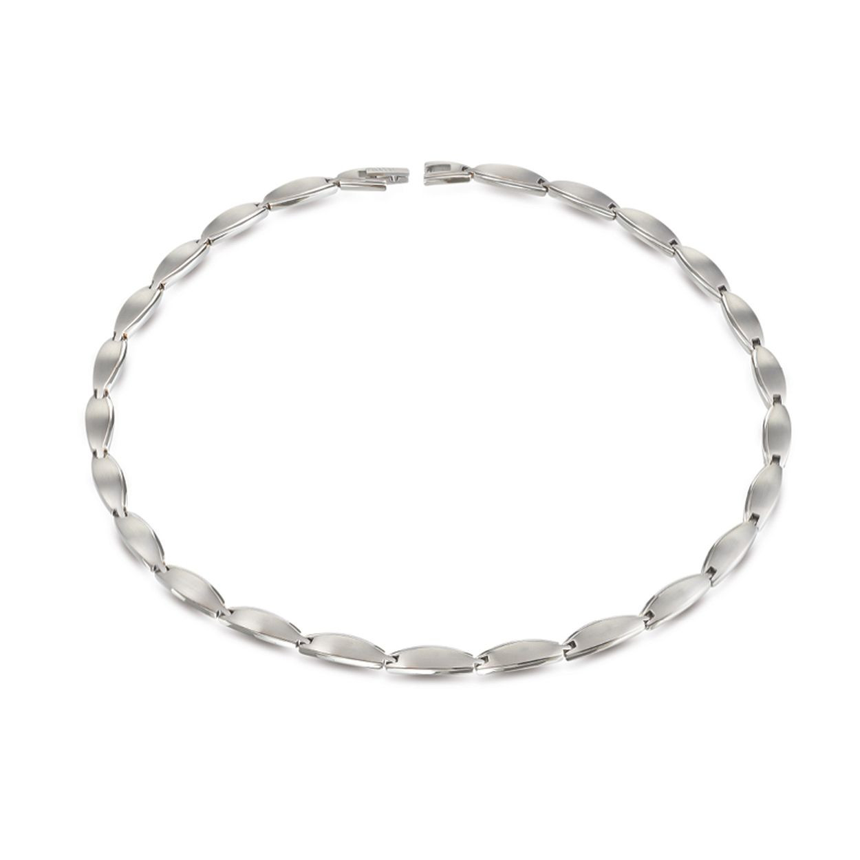 Dit gematteerde damescollier van Boccia Titanium heeft glanzende accenten. Het collier is 45 cm lang.
