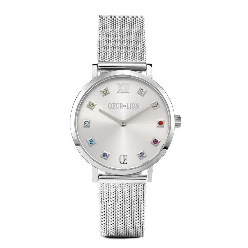Coeur de Lion stalen horloge multicolor. Dit stalen horloge heeft een zilveren wijzerplaat met op elk uur een vierkante GeoCube bezet met verschillende kleuren Swarovski Crystal. Het uurwerk heeft zilverkleurige wijzers en is waterdicht tot 5ATM. Aan de horlogekast zit een stalen Milanese gevlochten band. De band sluit door middel van een gemakkelijke clipsluiting. U ontvangt het horloge in orginel cadeauverpakking met garantiecertificaat.