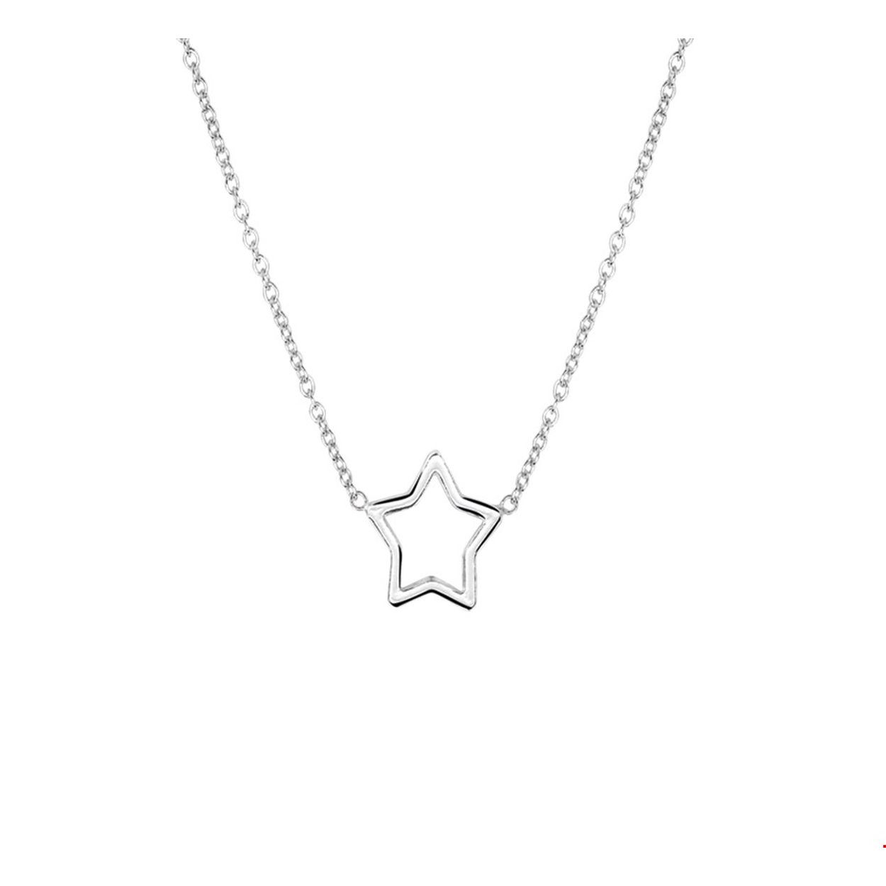 Beschrijving: Gerhodineerd zilveren collier met ster en een poli afwerking. De lengte bedraagt 41cm met 5cm extensie en de schakelbreedte bedraagt 1.3mm.