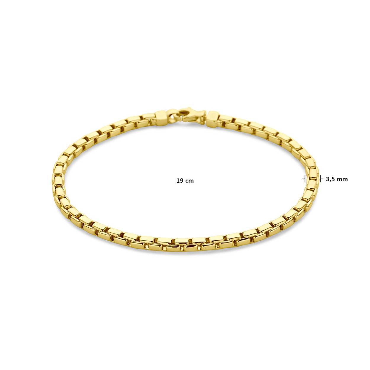14k Geelgouden armband met een draaglengte van 19cm. De armband heeft een schakelbreedte van 3.5mm. Uitgevoerd met een karabijn sluiting.