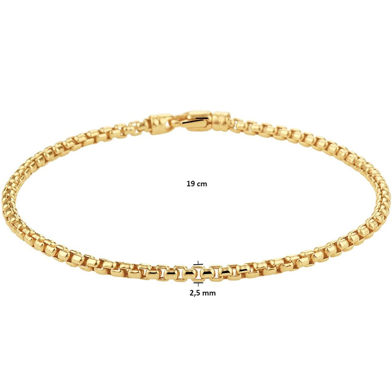 14k Geelgouden armband uitgevoerd met een venetiaanse schakel met een breedte van 2.5mm. De armband heeft een draaglengte van 19cm en een stevige karabijn sluiting.