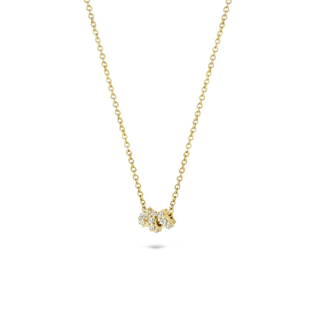 Blush ketting met referentie 3136YZI is gemaakt van 14 karaats geelgoud met een lengte van 42 centimeter. De drie hangers met zorkonia stenen bewegen vrij over het ankercollier, dat wordt gesloten met een karabijnsluiting. De hangers zijn in geelgoud uitgevoerd met zirkonia stenen gezet. Iedere hanger heeft een doorsnede van 3 millimeter. Let your heart glow - Wear your Blush