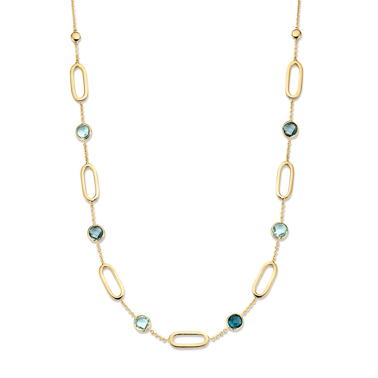 Geelgouden collier met ovale schakels en blauwe topaas + london blue topaas.