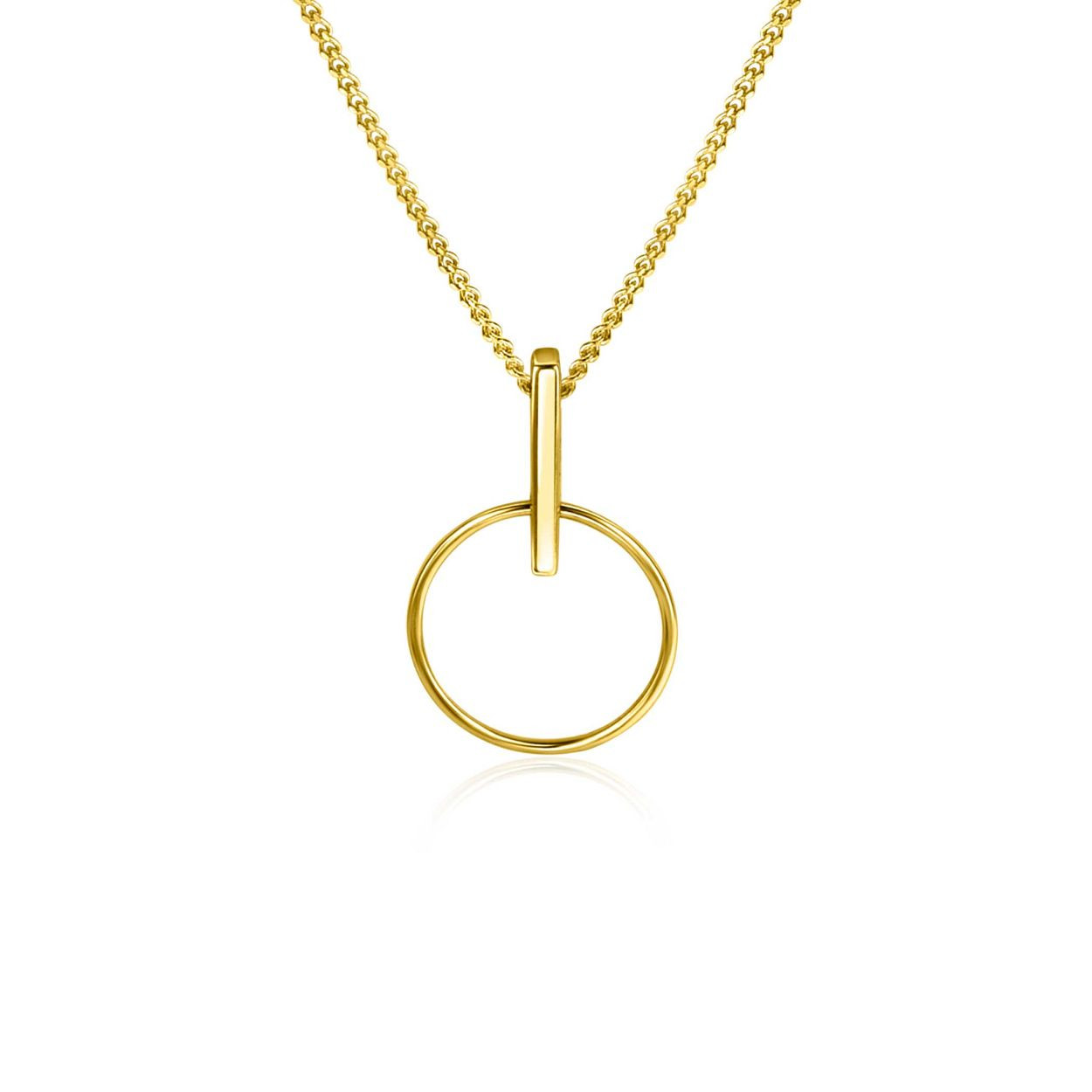 ZINZI Gold 14 krt gouden hanger 18mm met open ronde vorm en trendy staafje als hangoog ZGH404 (zonder collier)