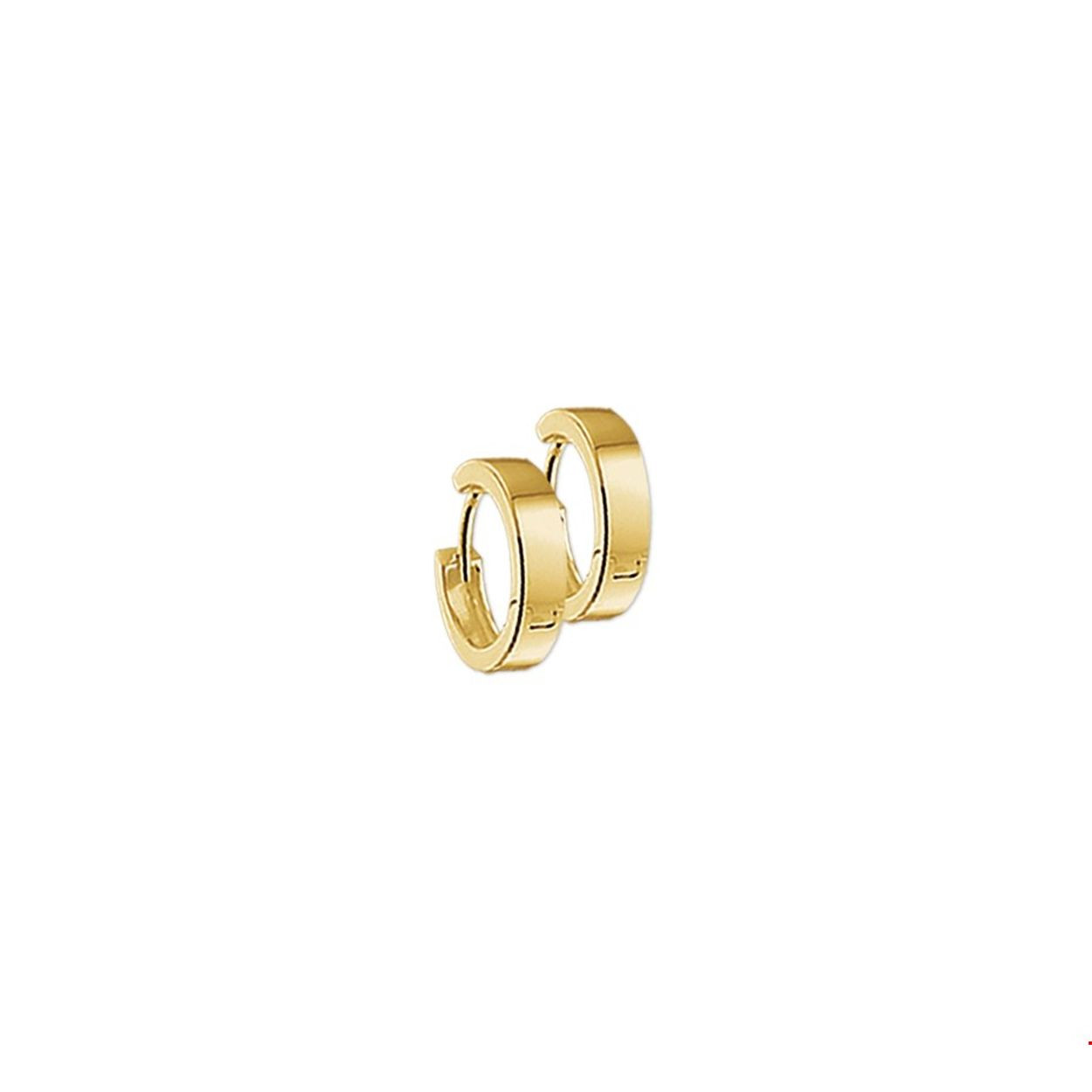 Geelgouden klapcreolen gegoten met een vlakke buis. Doelgroep: damesBreedte: 2.5 mm