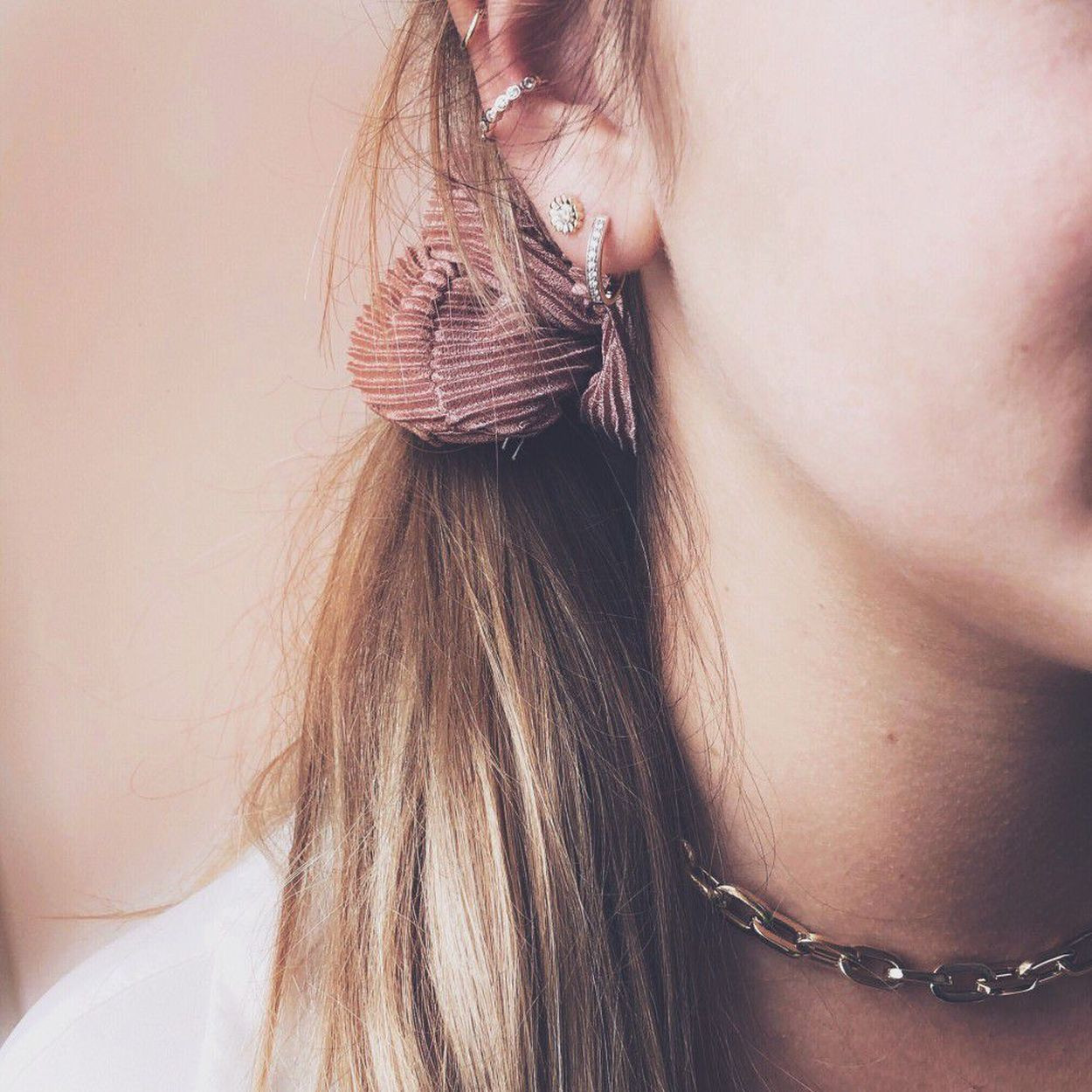 Geelgouden, smalle klapcreolen met zirkonia's in een ronde zetting.