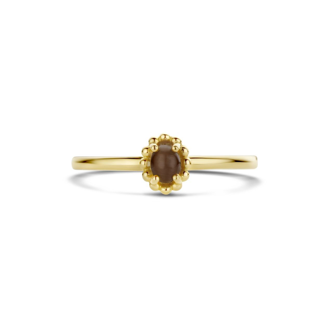 Blush Jewels worden met zorg, liefde en oog voor detail gemaakt van 14 karaat goud. Classic elegance. Deze 14 karaat geelgouden Blush ring { 1225YCB } is uitgevoerd in glanzend gepolijst geelgoud en voorzien van een briljant geslepen cat's eye brown edelsteen met een afmeting van 5,3mm bij 6,3mm. Solitair gedragen zorgt de ring voor een elegant-vrouwelijke uitstraling. Voor een vrouwelijk-geraffineerd effect draag je deze 1,3 millimeter brede ring gecombineerd met meerdere Blush ringen, als aanschuifring.Blush Jewels worden geleverd in een Blush cadeauverpakking. Let your heart glow - Wear your Blush