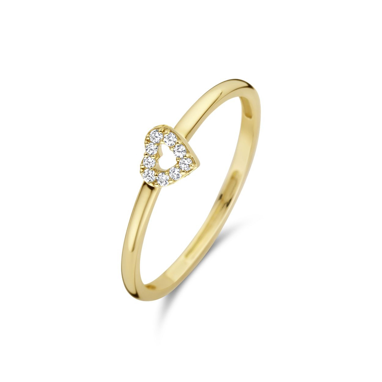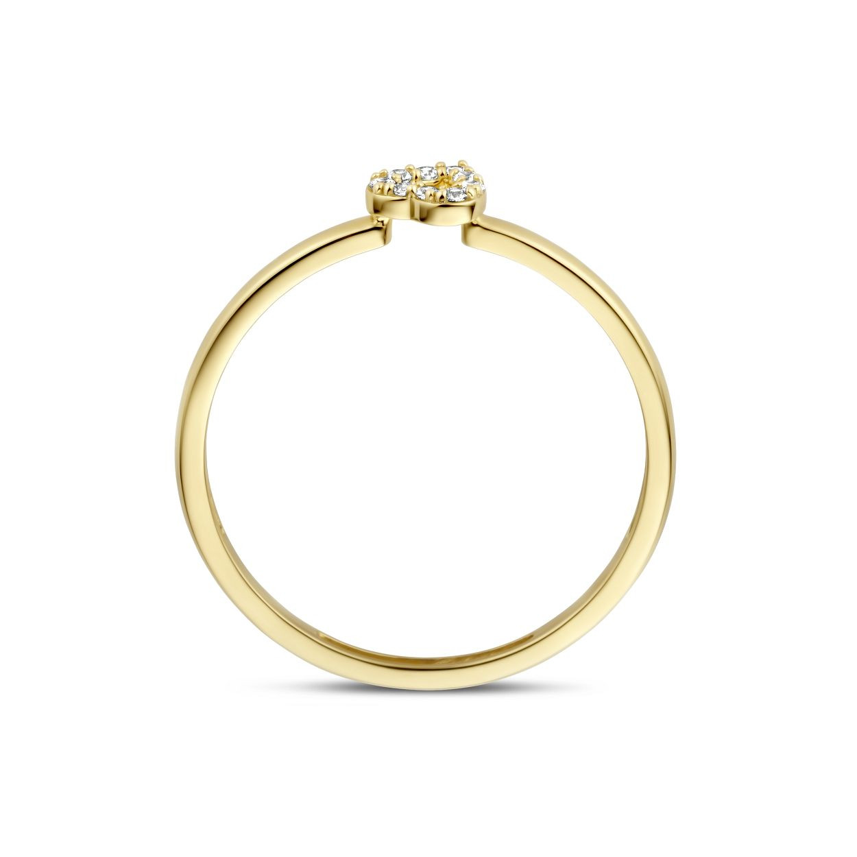 Blush Jewels worden met zorg, liefde en oog voor detail gemaakt van 14 karaat goud. Timeless elegance. Deze 14 karaat geelgouden Blush ring is een echte klassieker. De zirkonia's zijn gezet in de vorm van een hartje waardoor de steentjes een subtiel maar bijzonder detail vormen. Solitair gedragen zorgt de ring voor een elegant-vrouwelijke uitstraling. De ring { 1231YZI } kan ook gecombineerd worden met bijpassende oorstekers met referentie (7299YZI). Blush Jewels worden geleverd in een Blush cadeauverpakking.