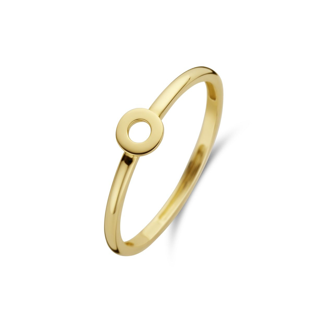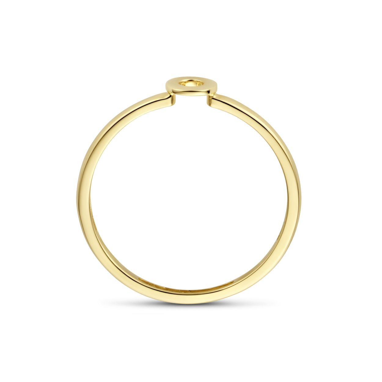 Classic elegance. Deze 14 karaat geelgouden Blush ring { 1233YGO } heeft een band van 1,3 mm breed. De ring is halfrond afgewerkt met een elegante opengewerkte plaat met een diameter van 4,5mm, en is voorzien van een Blush logo aan de binnenzijde. Solitair gedragen zorgt de ring voor een elegant-vrouwelijke uitstraling. Voor een vrouwelijk-geraffineerd effect draag je deze ring gecombineerd met meerdere Blush ringen, als aanschuifring.