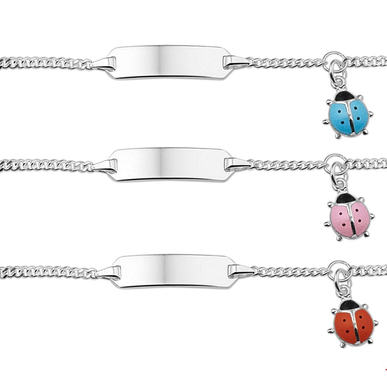 Beschrijving: Assortiment van zilveren graveerarmbanden met een lieveheersbeestje. De lengte bedraagt 11cm met 2cm extensie. De breedte van de graveerplaat bedraagt 5.5mm.