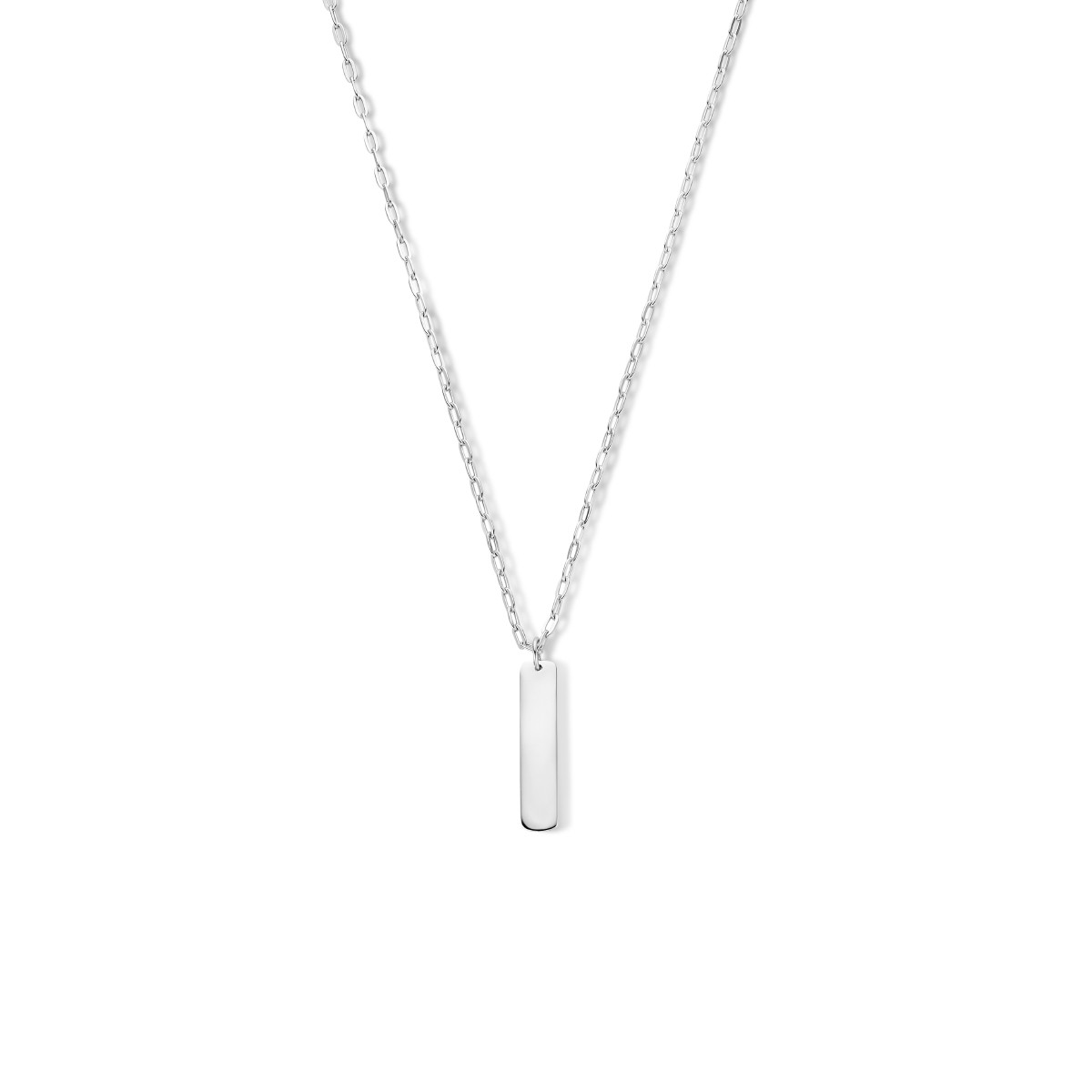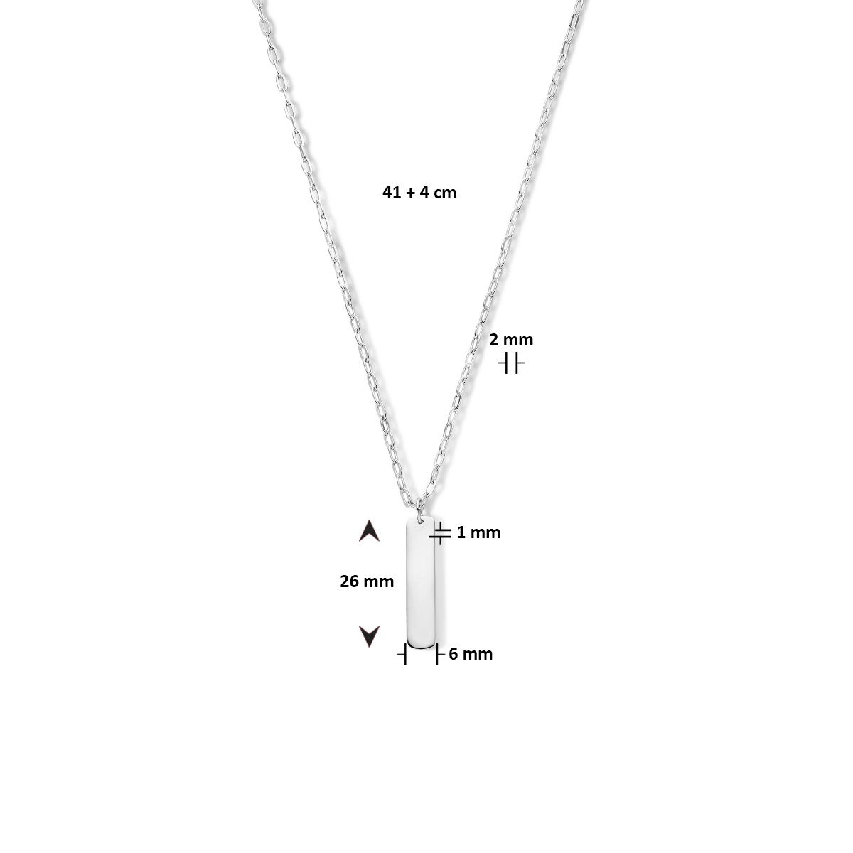 Gerhodineerd 925 zilveren graveercollier met een schakelbreedte van 2mm. Het collier heeft een draaglengte van 41cm en een extensie van 4cm. De plaat heeft een dikte van 1mm.