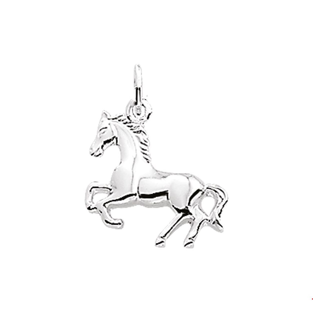 Zilveren bedel met een paard. De bedel heeft een los hangoog.