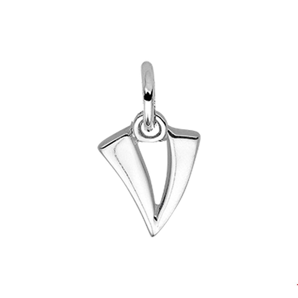 Zilveren hanger letter V met een hoogte van 11.5mm en een breedte van 8.5mm.