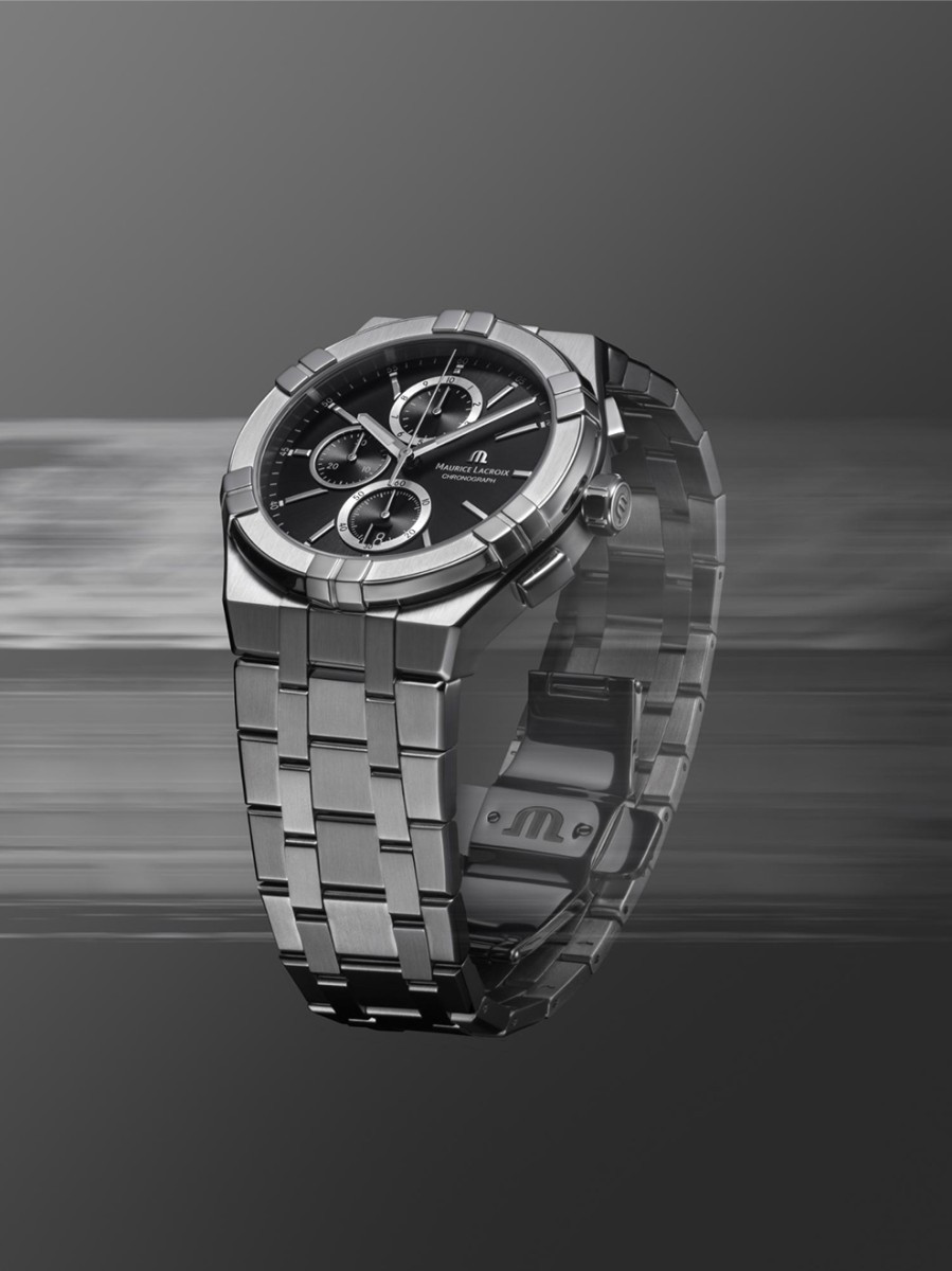 MLC horloge heren staal chronograaf zwarte wijzerplaat AI1118-SS002-330-1