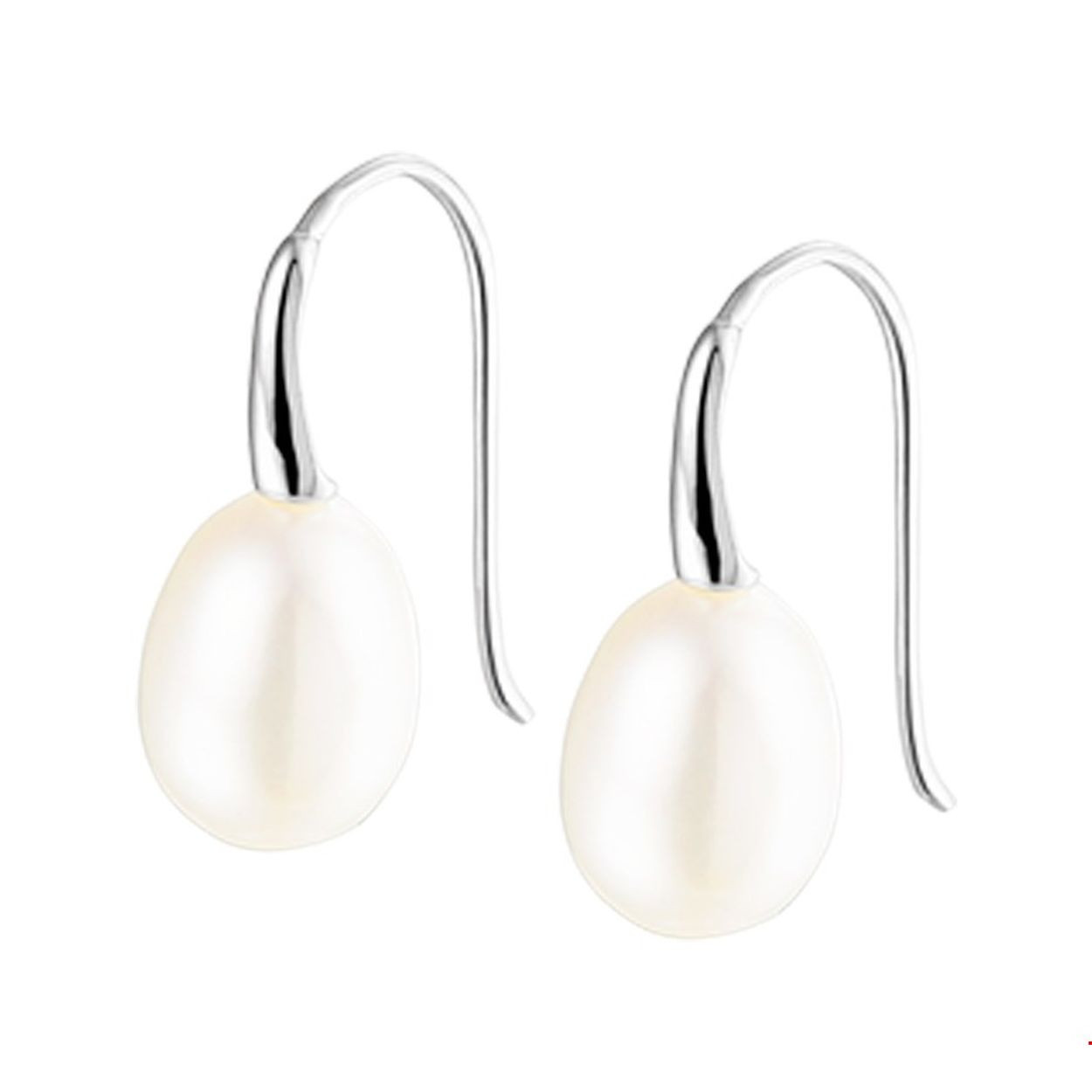 Beschrijving: Gerhodineerd zilveren oorhangers met zoetwaterparel.