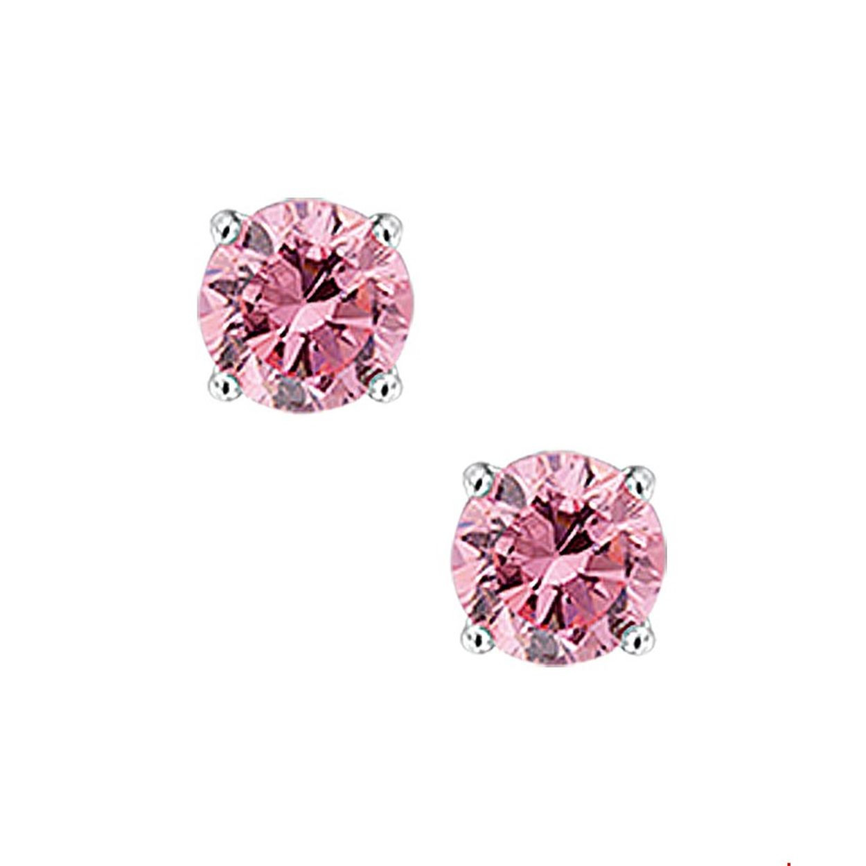 Beschrijving: Zilveren oorknoppen met roze zirkonia.