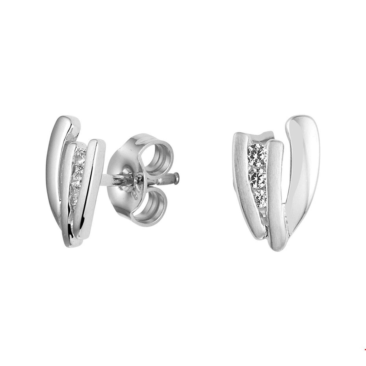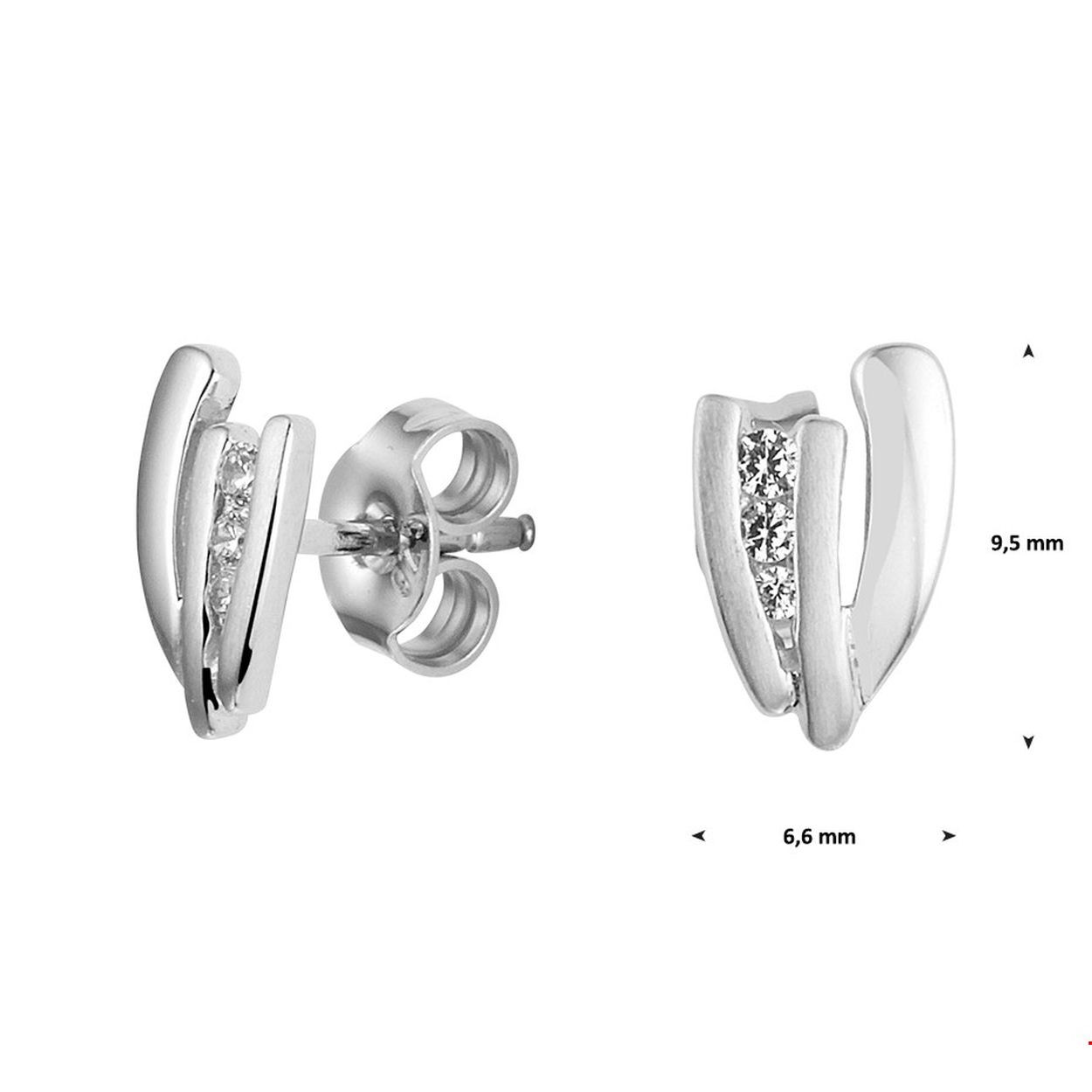 Beschrijving: Gerhodineerd zilveren oorknoppen met een afmeting van 9.5x6.6mm uitgevoerd met een luxe rijzetting van 3 briljant geslepen zirkonia. De oorknoppen zijn te combineren met bijpassende sieraden uit onze collectie.