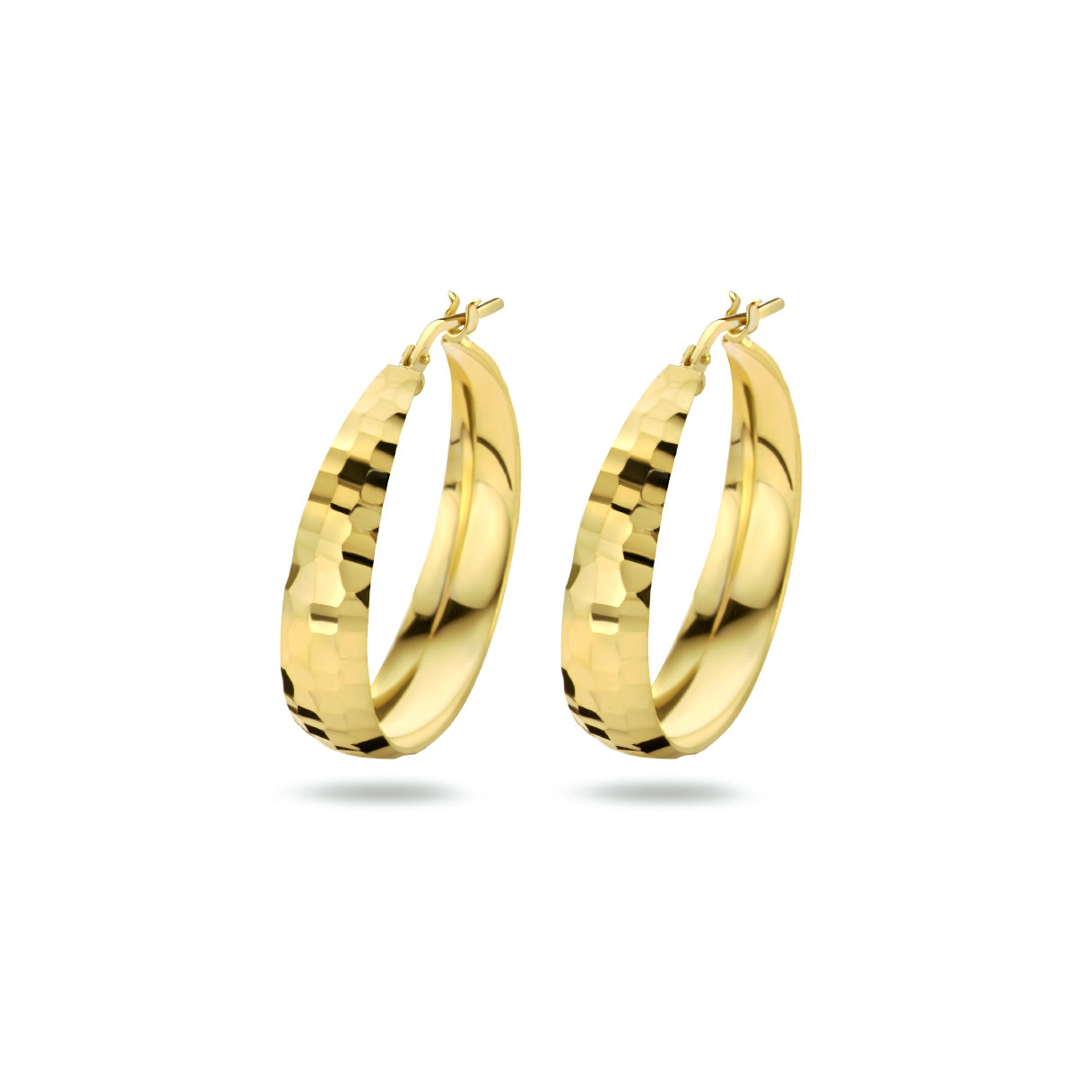 Geelgoud op 925 zilveren oorringen met een breedte van 7mm. Geen garantie op plating.