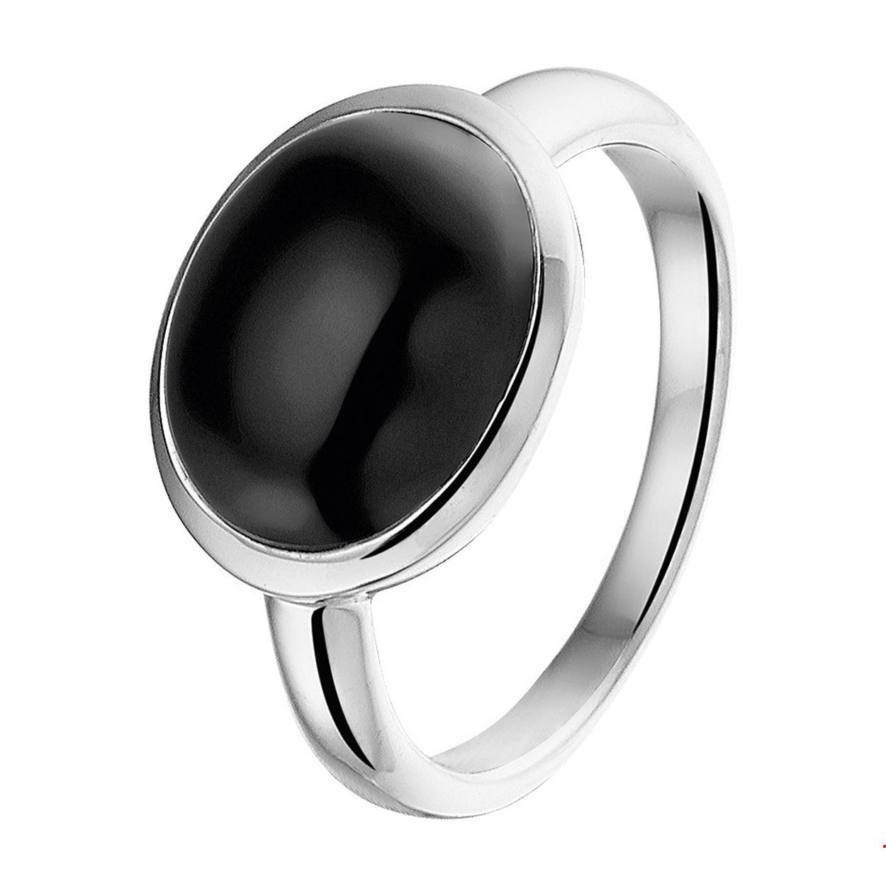 Beschrijving: Gerhodineerd zilveren 11.5mm brede ring met zwarte onyx en een poli afwerking. Info: Gerhodineerd zilver is door de rhodiumlaag beter bestand tegen verkleuren en krassen.