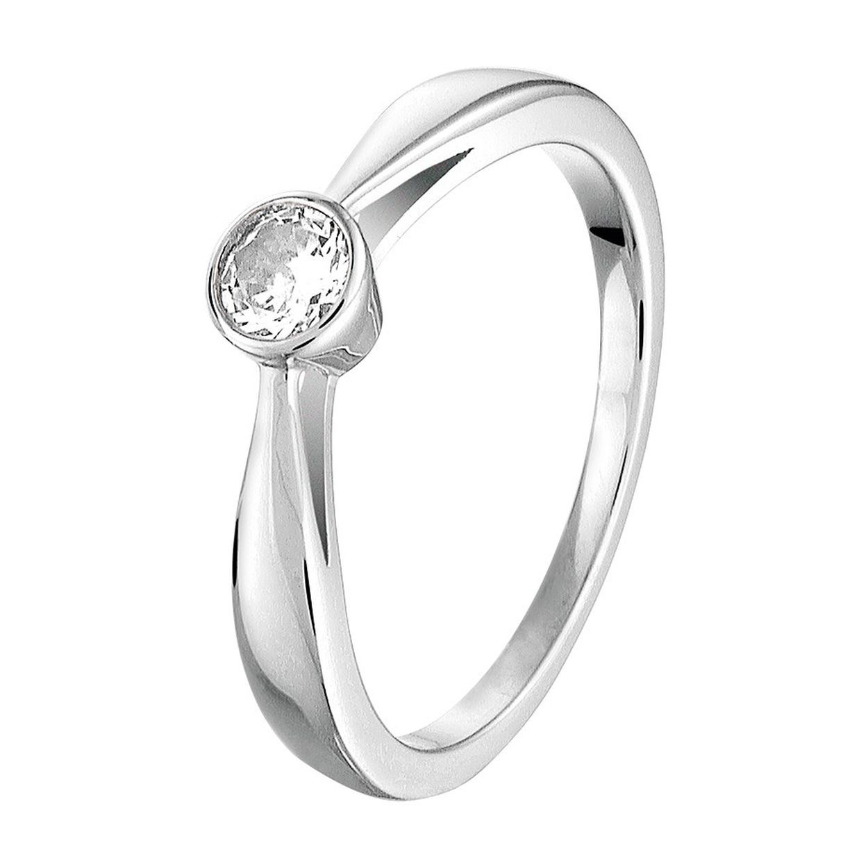 Klassiek gerhodineerd zilveren 4.5mm brede ring uitgevoerd met een solitaire zirkoina in een zetkast. Door het tijdloze ontwerp met de schitterende zirkonia steen kunt u de ring nog jarenlang zorgeloos dragen. Tip: Combineer de ring met andere tijdloze sieraden uit onze collectie en creeer zo elke keer weer een nieuwe look!.
