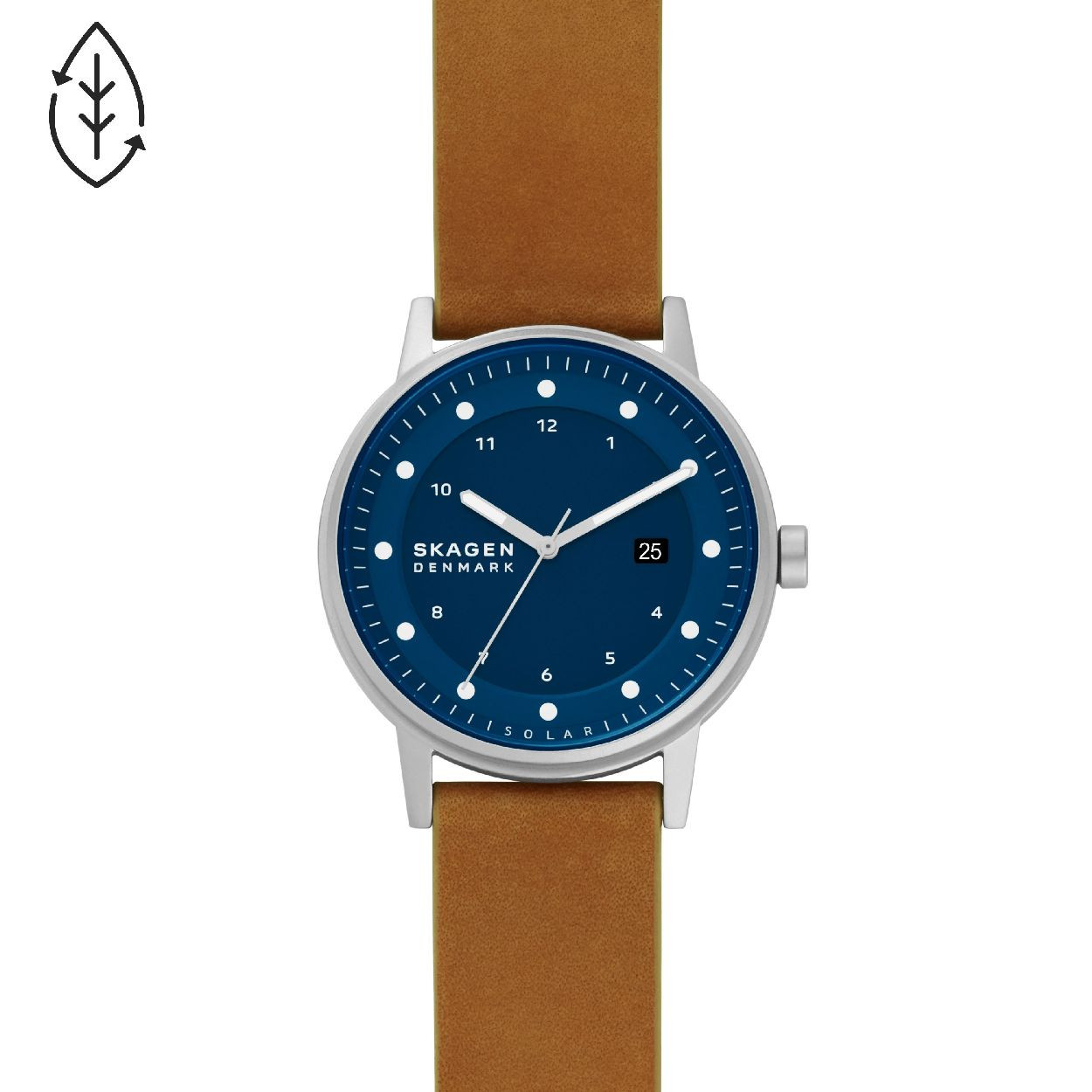 Dit herenhorloge is van het merk Skagen. Het is een horloge met een band gemaakt van leer. De diameter van de kast is 40 mm.