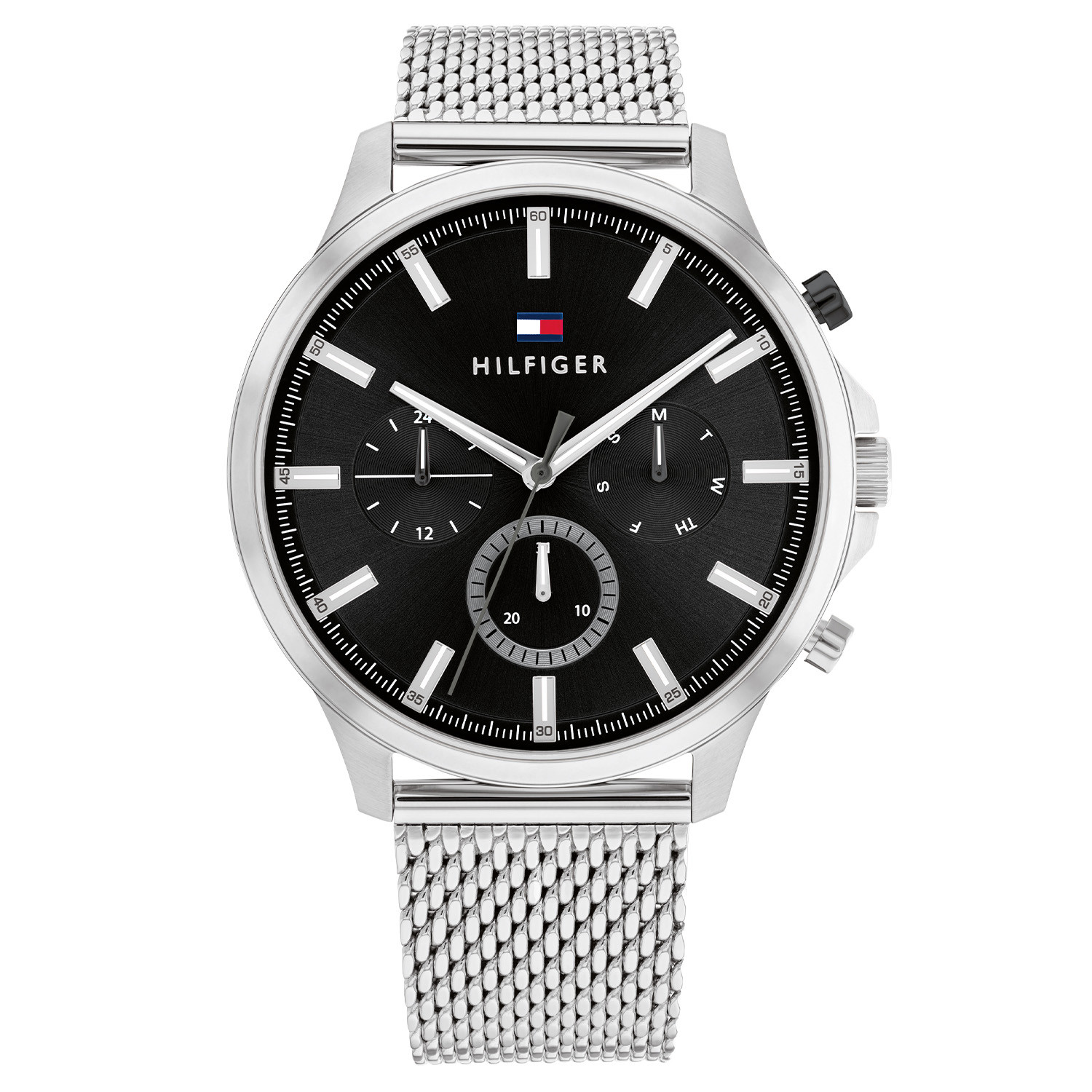 Dit horloge heeft een 44 mm stalen kast met zwarte wijzerplaat. De stalen details in combinatie met de milanese band maken dit een prachtig heren horloge.