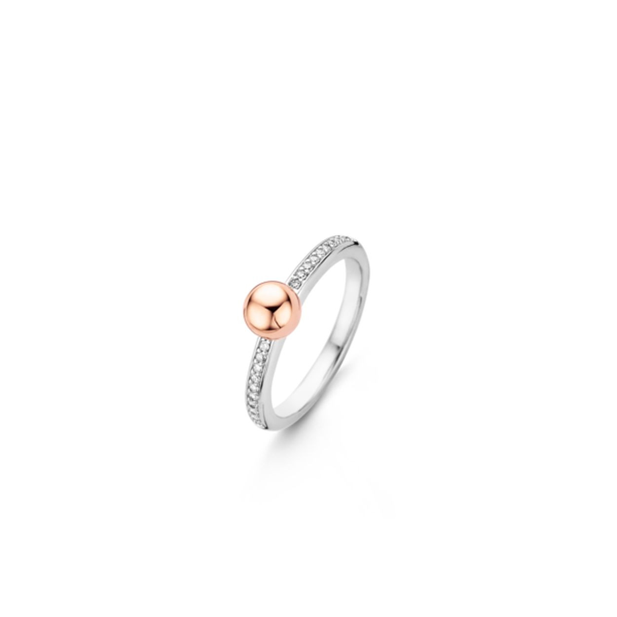Een hint van helder verguld roségoud is zorgvuldig met de hand geplaatst op deze verfijnde TI SENTO - Milano ring. Je draagt haar bij elke look.
