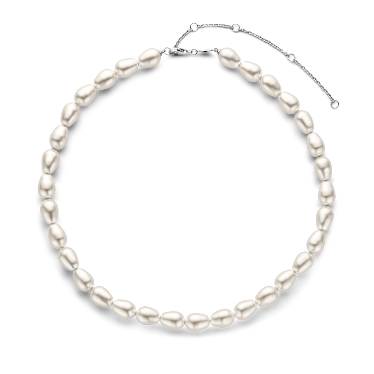 Deze TI SENTO - Milano zilveren ketting 3994PW/42 is gedecoreerd met een reeks van glanzende witte parels. De verschillende, natuurlijke silhouetten en formaten van de parels geven de ketting een speelse en verfijnde look. De ketting is gemaakt van 925 sterling zilver en verstelbaar in lengte, tussen 38 en 48 cm. Draag haar verfijnde elegantie in elke look, dag en nacht.