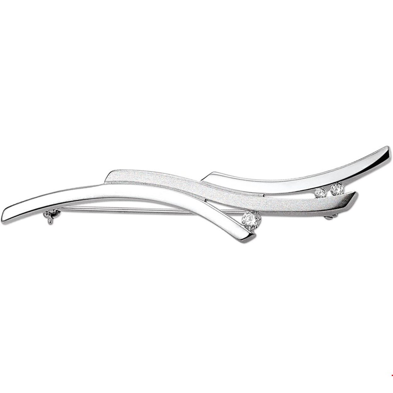Beschrijving: Zilveren broche met zirkonia en een poli/matte afwerking. Verpakt per: 1Doelgroep: damesBreedte: 66.5 mmHoogte: 12 mmZetting: solitaire (span zetting)