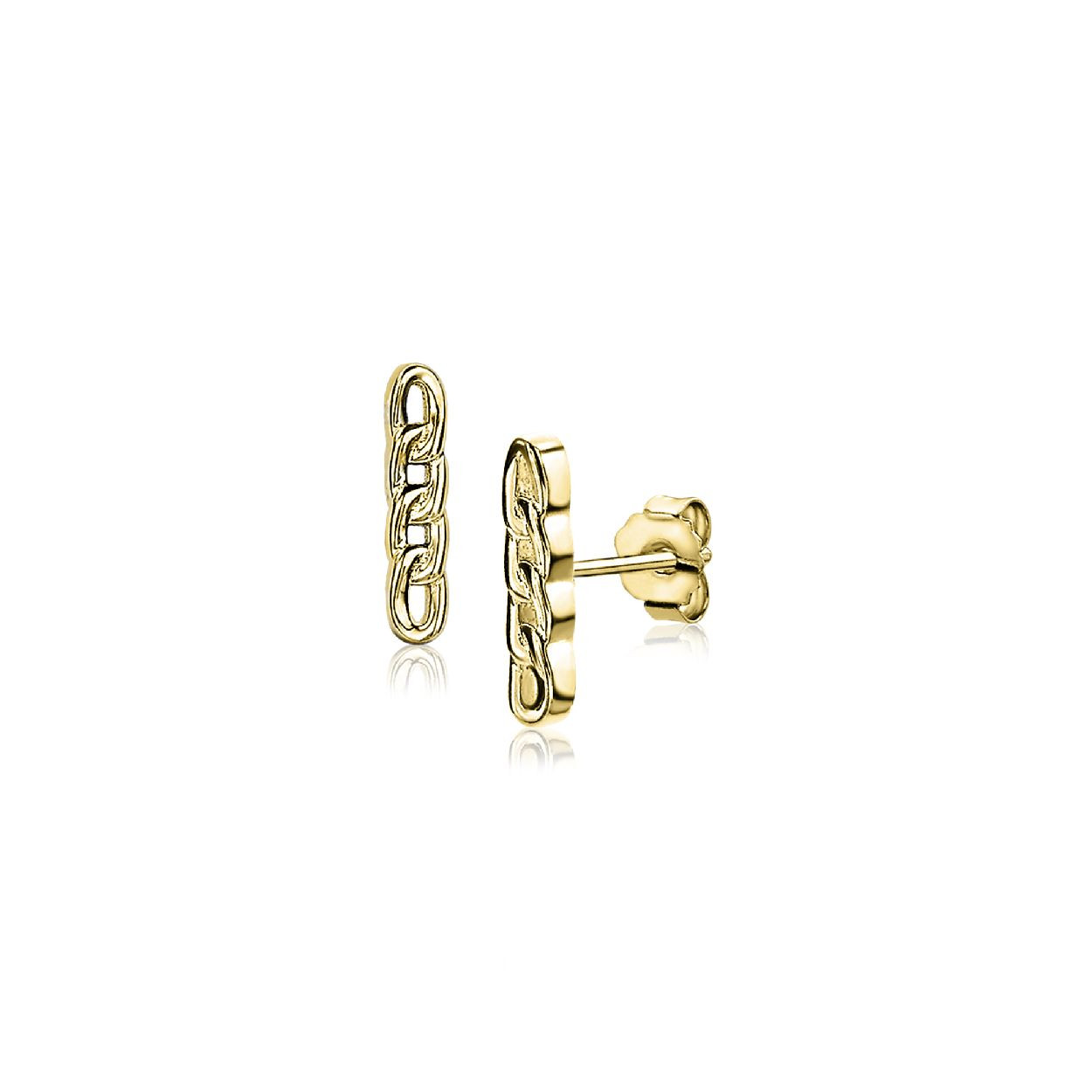 ZINZI zilveren oorknoppen geel verguld staafje gourmet 12mm ZIO1385G