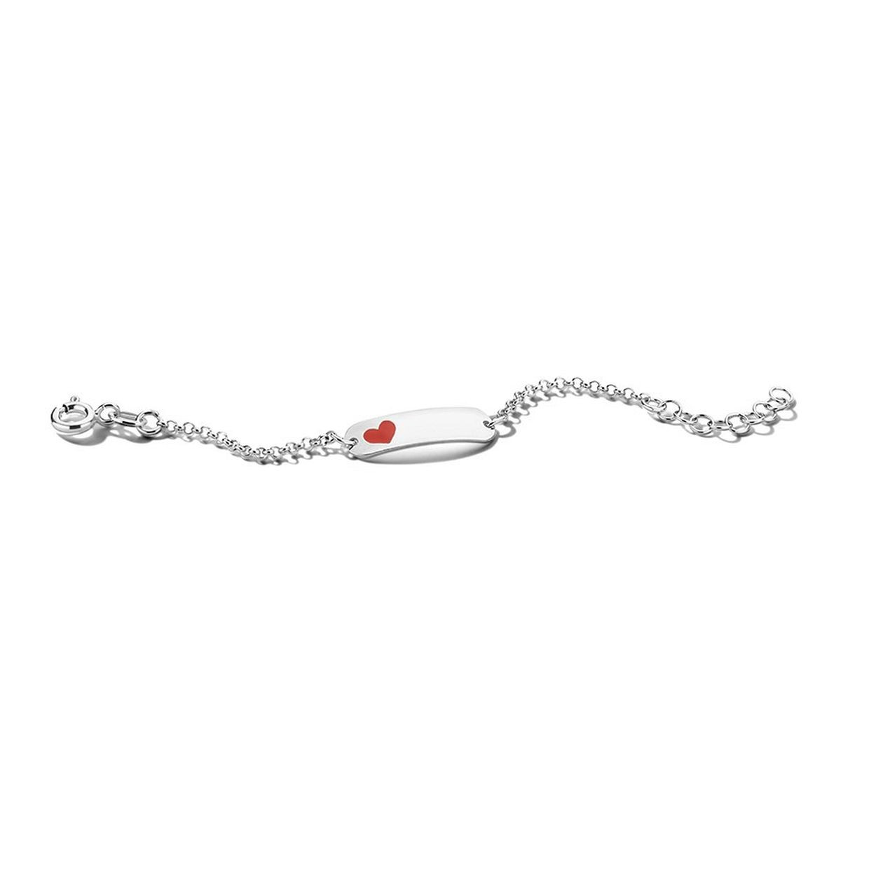 925 Zilveren kinder graveerarmband uitgevoerd met een hartje. De armband heeft een schakelbreedte van 1.7mm en draaglengtes van 9 tot 11cm. Het graveerplaatje heeft een afmeting van 5.5x21mm.