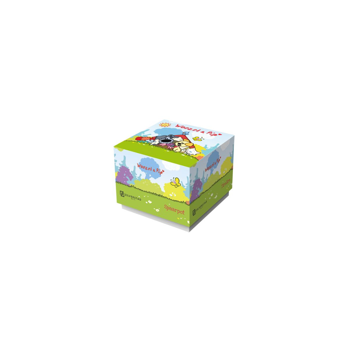 Spaarpot in de vorm van een hondenhok met de afbeeldingen van de hondjes Woezel en Pip en aan de zijkant tulpjes en een vlindertje. De spaarpot kan gegraveerd worden, wat het een persoonlijk geschenk maakt. Deze Woezel en Pip spaarpot is verzilverd en gelakt, waardoor poetsen overbodig is. Woezel en Pip zijn bedacht door Guusje Nederhorst. Een deel van de opbrengst van alle Woezel & Pip producten van Zilverstad gaat naar de Guusje Nederhorst Foundation.