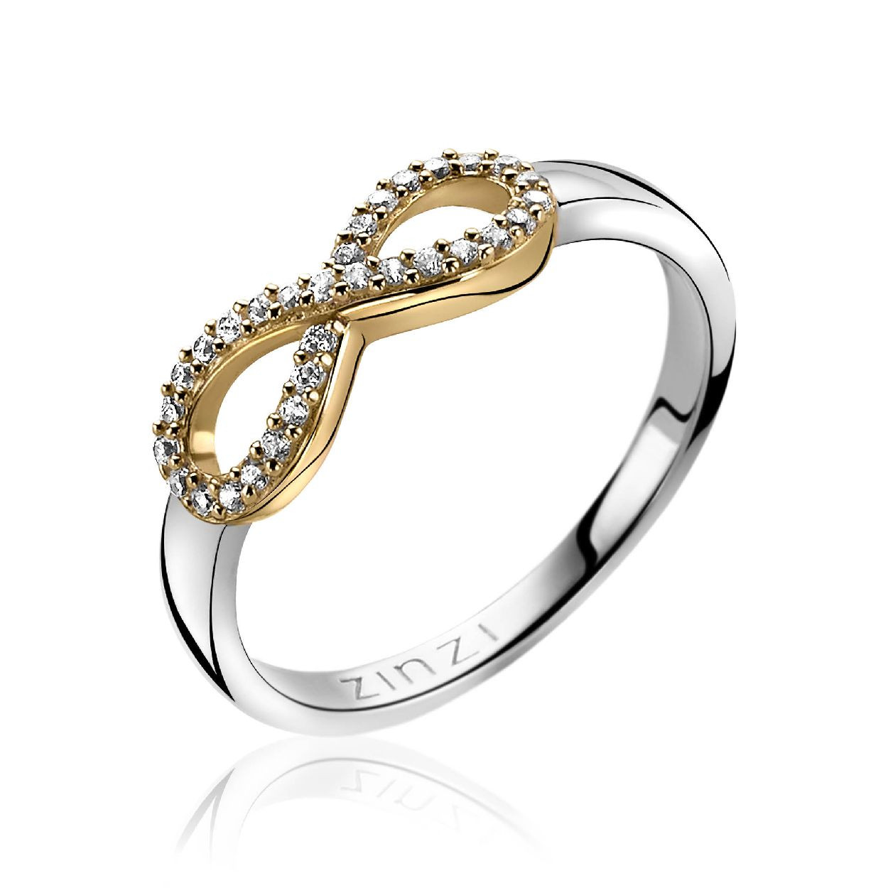 Zilveren ring Zinzi geel verguld en zirkonia mt56